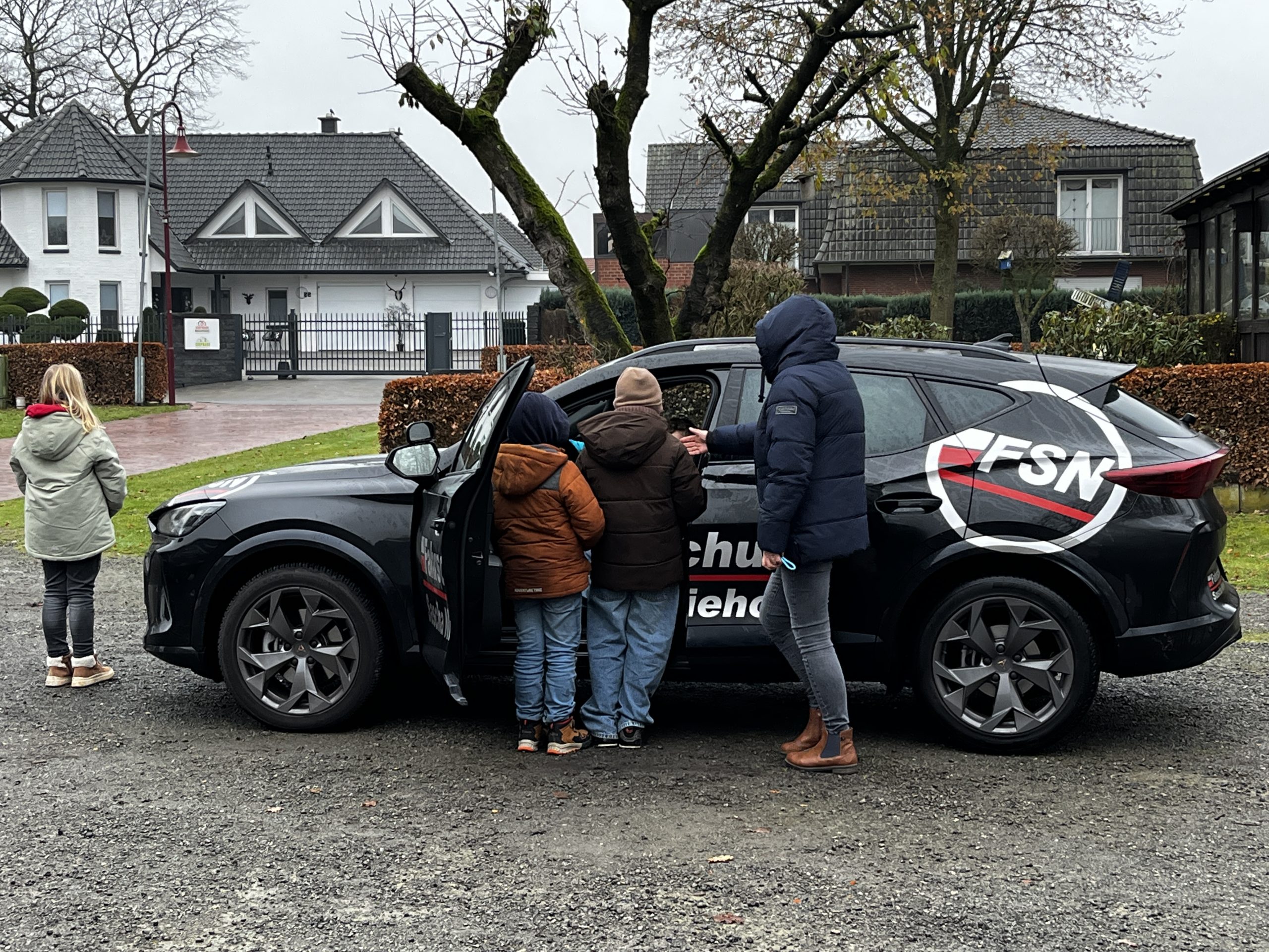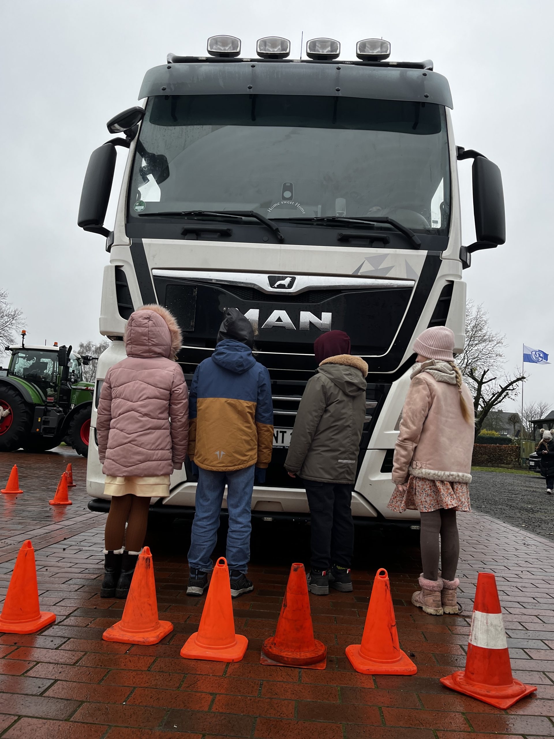 Ein besonderes Highlight war der Besuch auf dem Schützenplatz. Dort stellte die Fahrschule Niehoff verschiedene Fahrzeuge (u. a. Transporter, LKW, PKWTraktor) bereit, an denen die Kinder den „Toten Winkel“ entdecken und testen konnten. Schnell wurde klar, wie leicht Fußgänger oder Radfahrende übersehen werden können – und wie wichtig es ist, aufmerksam zu bleiben.